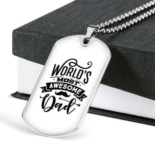Dad Dog Tag Father’S Day, World Most Awesome Dad Dog Tag Necklace Gift For Daddy