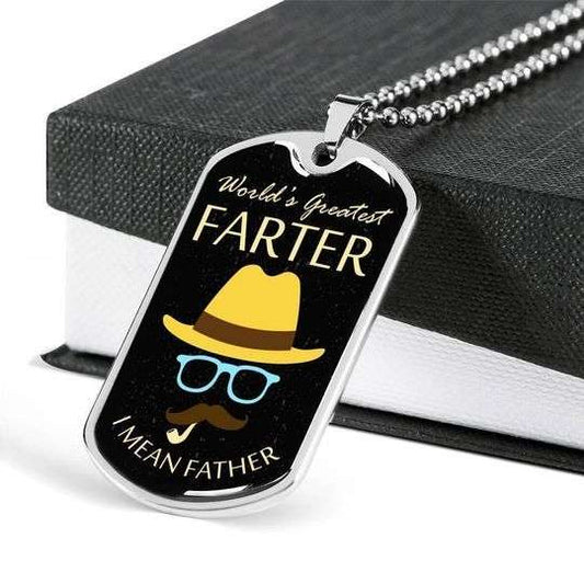 Dad Dog Tag Father’S Day, World’S Greatest Farter I Mean Father Dog Tag Necklace For Dad