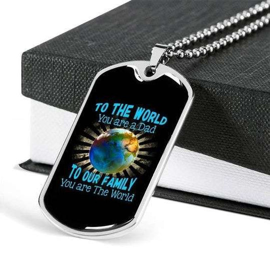 Dad Dog Tag Father’S Day, You Are The World Dog Tag Necklace Engraving Gift For Dad Daddy