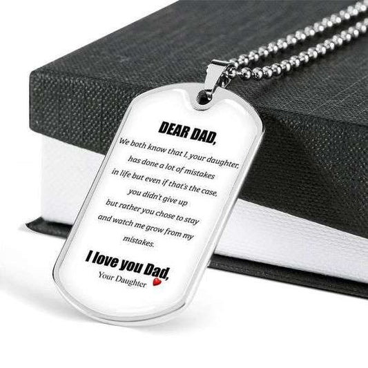 Dad Dog Tag Father’S Day, You Chose To Stay And Watch Me Grow Dog Tag Necklace Gift For Dad