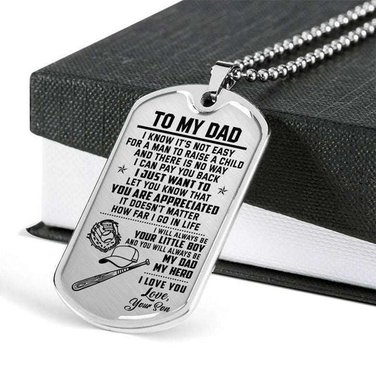 Dad Dog Tag Father’S Day, You’Re Appreciated Baseball Player Stainless Dog Tag Necklace Gift For Daddy