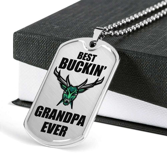 Grandfather Dog Tag Custom Picture, Best Buckin Grandpa Ever Dog Tag Necklace For Grandpa