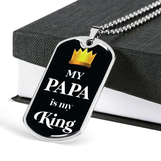 Grandfather Dog Tag Custom Picture Father’S Day, My Papa Is My King Dog Tag Necklace Gift For Dad