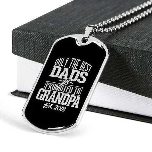 Grandfather Dog Tag Custom Picture Father’S Day, Only The Best Dads Get Promoted To Grandpa Dog Tag Necklace For Dad