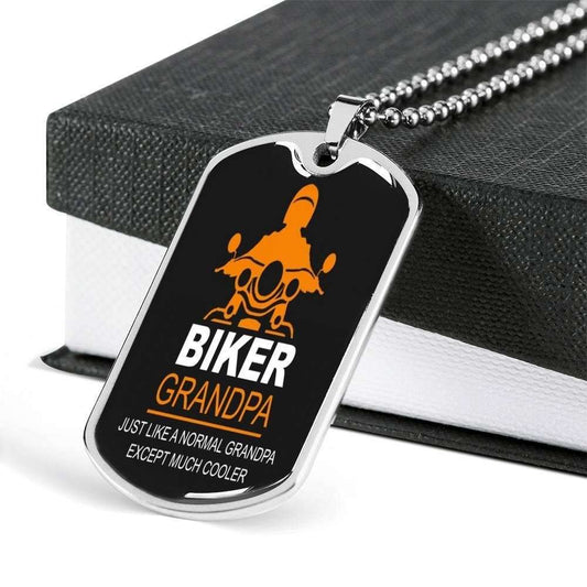 Grandfather Dog Tag Custom Picture, Biker Grandpa Dog Tag Necklace Gift For Men