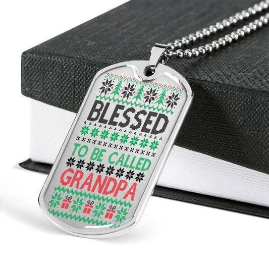 Grandfather Dog Tag Custom Picture, Blessed To Be Called Grandpa Dog Tag Necklace For Grandpa