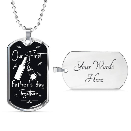 Dad Dog Tag Custom Picture Father’S Day Gift, Our First Father’S Day Together Dog Tag Military Chain Necklace Gift For Men
