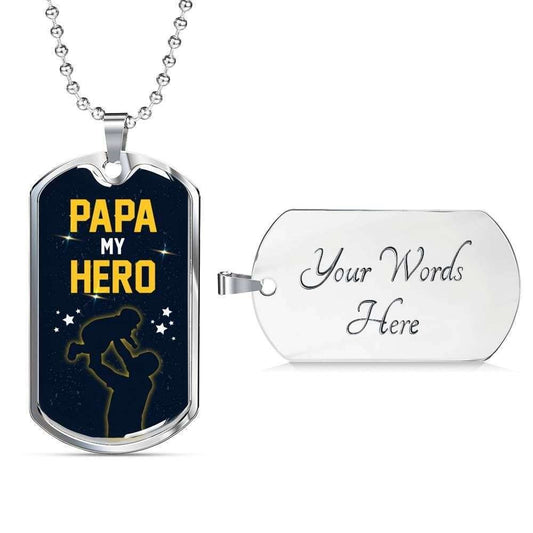 Dad Dog Tag Custom Picture Father’S Day Gift, Papa My Hero Dog Tag Military Chain Necklace Gift For Men