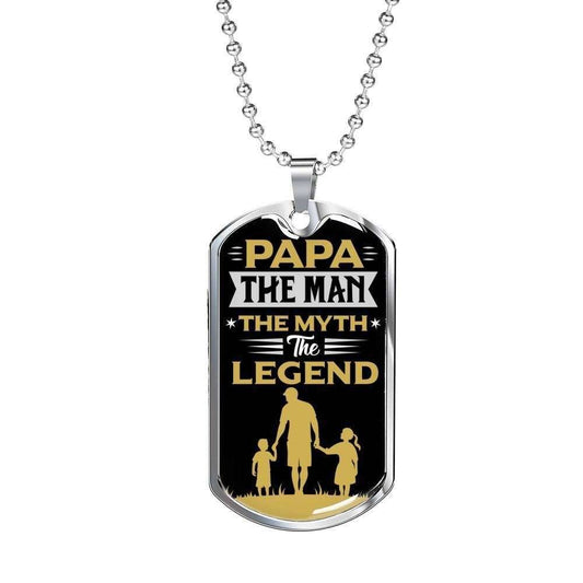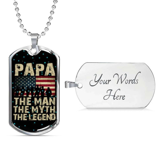 Dad Dog Tag Custom Picture Father’S Day Gift, Papa The Man Myth Legend Dog Tag Military Chain Necklace For Papa