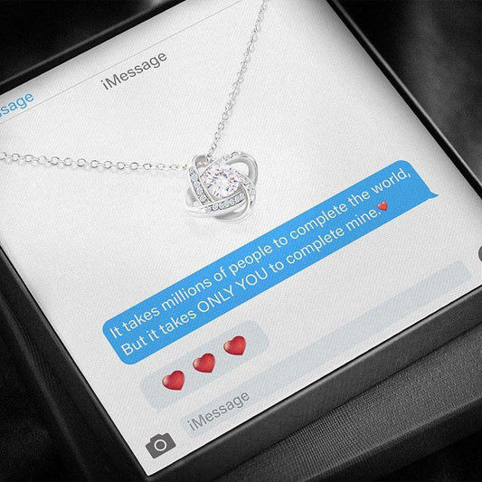 Girlfriend Necklace, Wife Necklace, My Love Necklace “ You Complete Me Message Card “ Love Knots