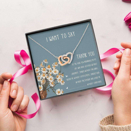 Friend Necklace, Grateful Necklace “ Thank You Necklace “ Interlocking Hearts Necklace With Gift Box For Birthday Christmas