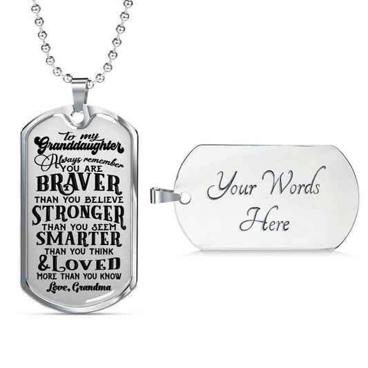 Granddaughter Dog Tag Custom Picture, Loved More Than You Know Grandma Giving Granddaughter Dog Tag Military Chain Necklace