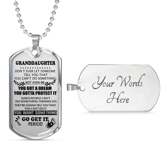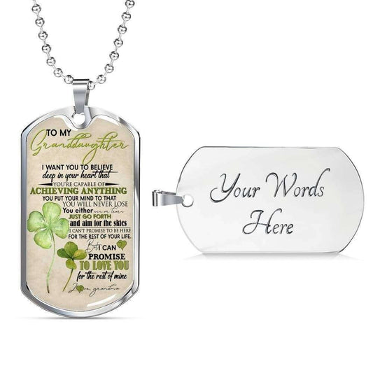 Granddaughter Dog Tag Custom Picture, To My Granddaughter I Want You To Believe In Yourself Dog Tag Military Chain Necklace