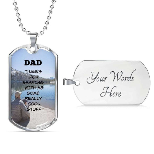 Dad Dog Tag Custom Picture Father’S Day Gift, Thanks For Sharing With Me Some Really Cool Stuff Dog Tag Military Chain Necklace For Dad