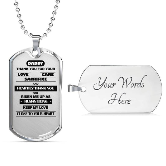Dad Dog Tag Custom Picture Father’S Day Gift, Thanks For Your Love Care Sacrifice Dog Tag Military Chain Necklace For Dad