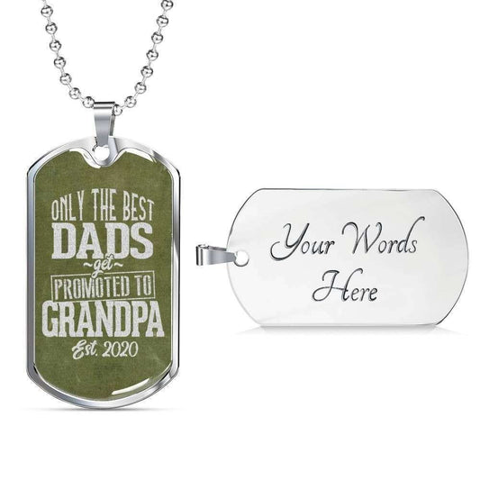 Dad Dog Tag Custom Picture Father’S Day Gift, The Best Dads Get Promoted To Grandpa Dog Tag Military Chain Necklace Gift For Men