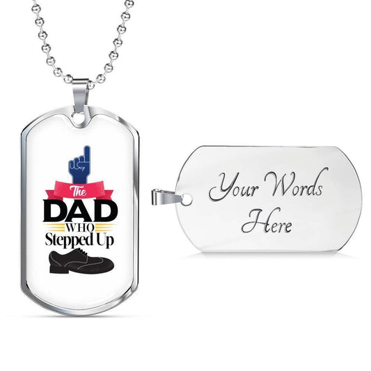 Dad Dog Tag Custom Picture Father’S Day Gift, The Dad Who Stepped Up Dog Tag Military Chain Necklace Gift For Dad Dog Tag