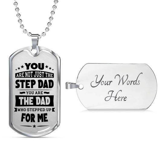 Dad Dog Tag Custom Picture Father’S Day Gift, The Dad Who Stepped Up For Me Dog Tag Military Chain Necklace For Dad