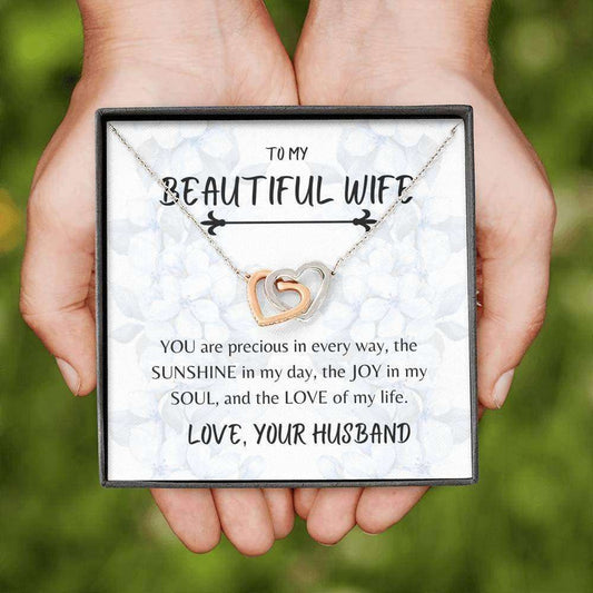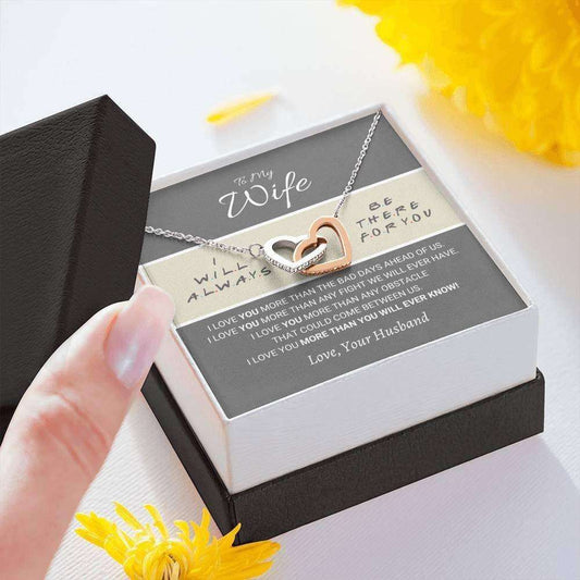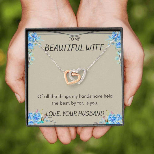 Wife Necklace, To My Wife Necklace Gift “ Because Of You “ Interlocking Hearts Necklace