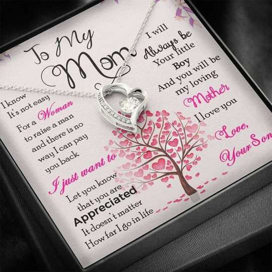Mom Necklace, I Will Always Be Your Little Boy Forever Love Necklace Gift For Mom