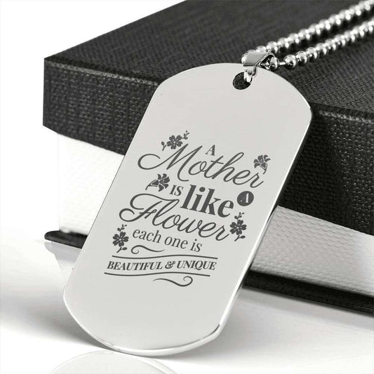 Mom Dog Tag Custom Picture, Mother’S Day Dog Tag For Mom Etched Dog Tag Necklace Silver Necklace Mother Is Like A Flower