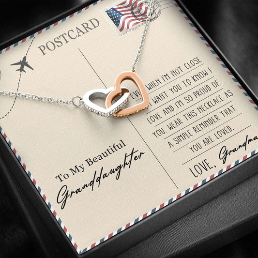 Granddaughter Necklace, To My Beautiful Granddaughter From Grandma “ Interlocking Hearts Necklace