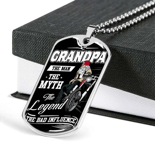 Grandfather Dog Tag, Never Underestimate A Relentless Power Of Grandpa Silver Dog Tag Military Chain Necklace Gift For Men