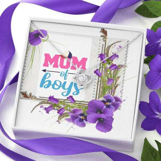 Mom Necklace, Mom Of Boys Orchid Flowers Love Knot Necklace Gift For Mom