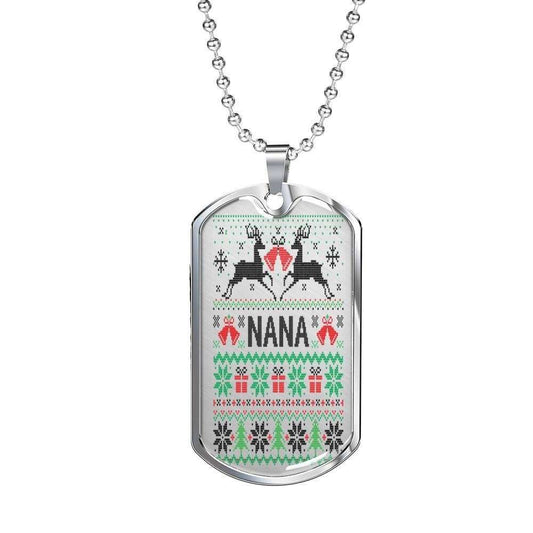 Nana Dog Tag, Custom Merry Christmas Dog Tag Military Chain Necklace For Nana Dog Tag
