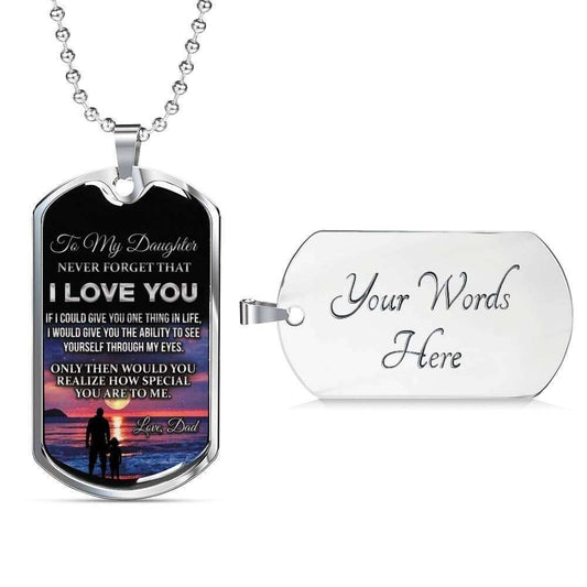 Daughter Dog Tag, Never Forget That I Love You Silver Dog Tag Military Chain Necklace Gift For Daughter