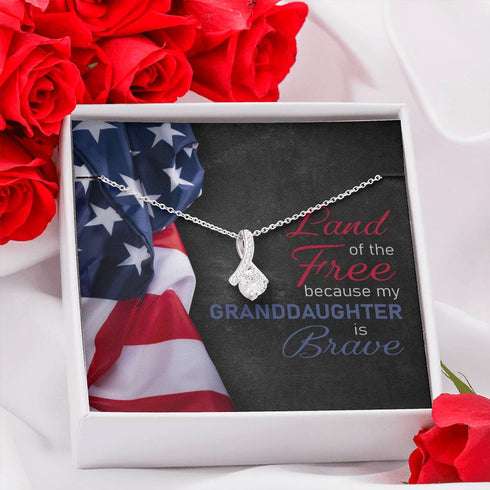Granddaughter Necklace, Land Of The Free Because My Granddaughter Is Brave “ Military Beauty Necklace