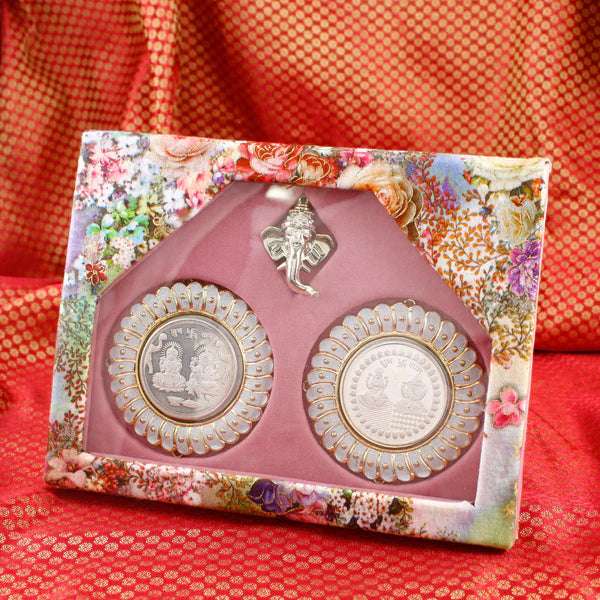 999.9 Purity Ganesh Lakshmi ji Silver Coins With Gift Wrap For Birthday and Marriage Anniversary( Pack Of 2)