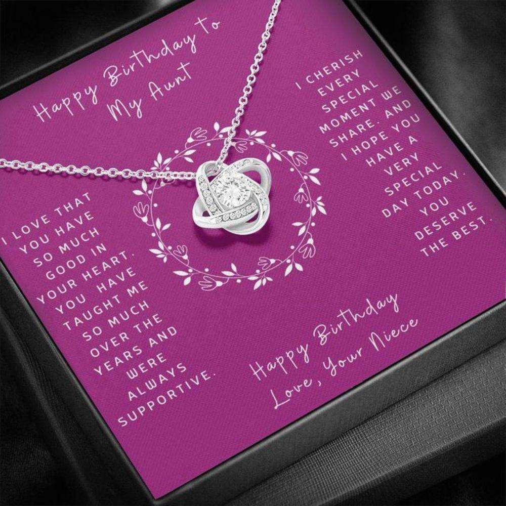 This Love Knot Necklace is a wonderful way to celebrate your aunt's birthday. It's a reminder of your love and a token of your best wishes for her on this special day.