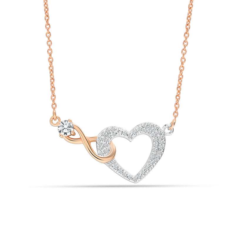 The "Eternal Love" gift is a beautifully designed piece of jewelry that symbolizes infinite love and affection. This necklace features a Two-Tone Infinity Cubic Zirconia Heart Pendant made from high-quality materials: