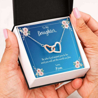 Daughter Necklace, Daughter Be Who God Meant You To Be Love Mom Hearts Necklace