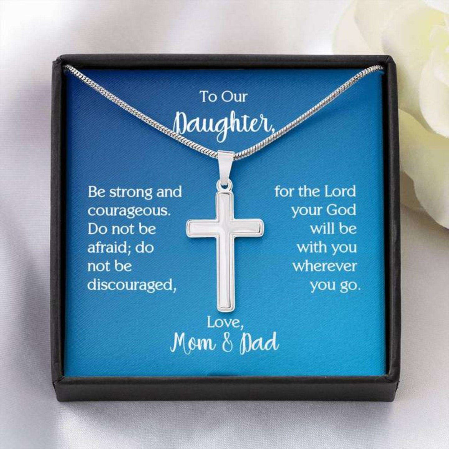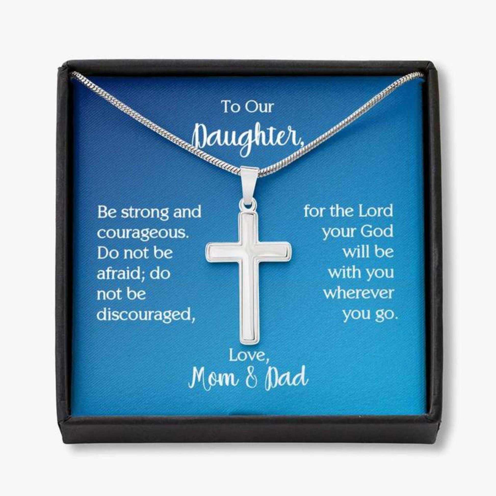 Daughter Necklace, To Our Daughter Cross Necklace With Joshua 1:9