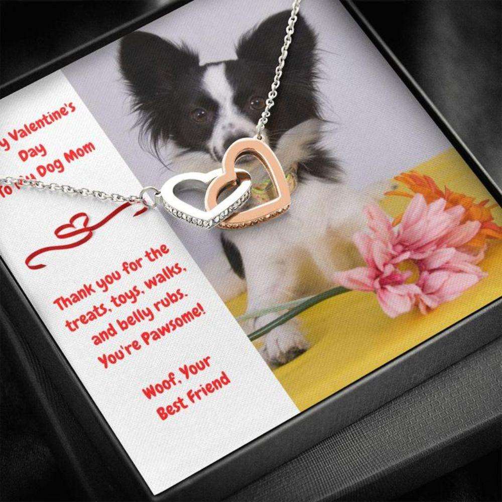Dog Mom Necklace, Gift Necklace Message Card – To My Papillion Dog Mom Happy Valentine’s Day