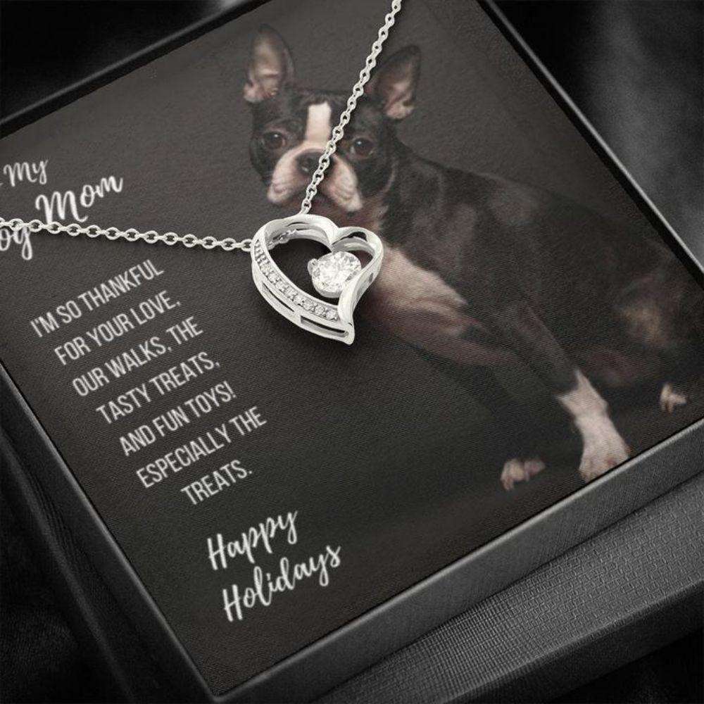 Dog Mom Necklace, Gift Necklace With Message Card – Boston Terrier Dog Mom Heart Necklace