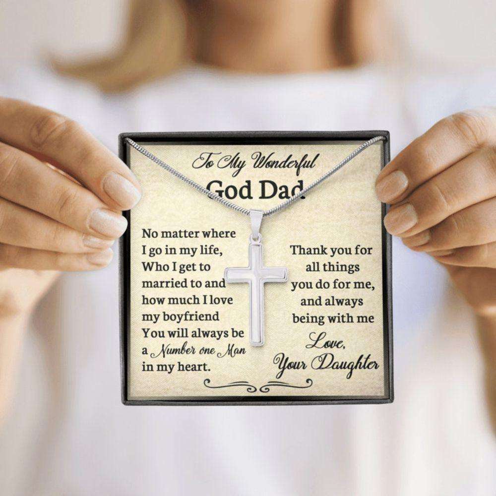 Goddad Necklace, To My Wonderful Goddad Cross Necklace, Father’S Day Gift For God Dad, Necklace Gift For God Dad From Daughter
