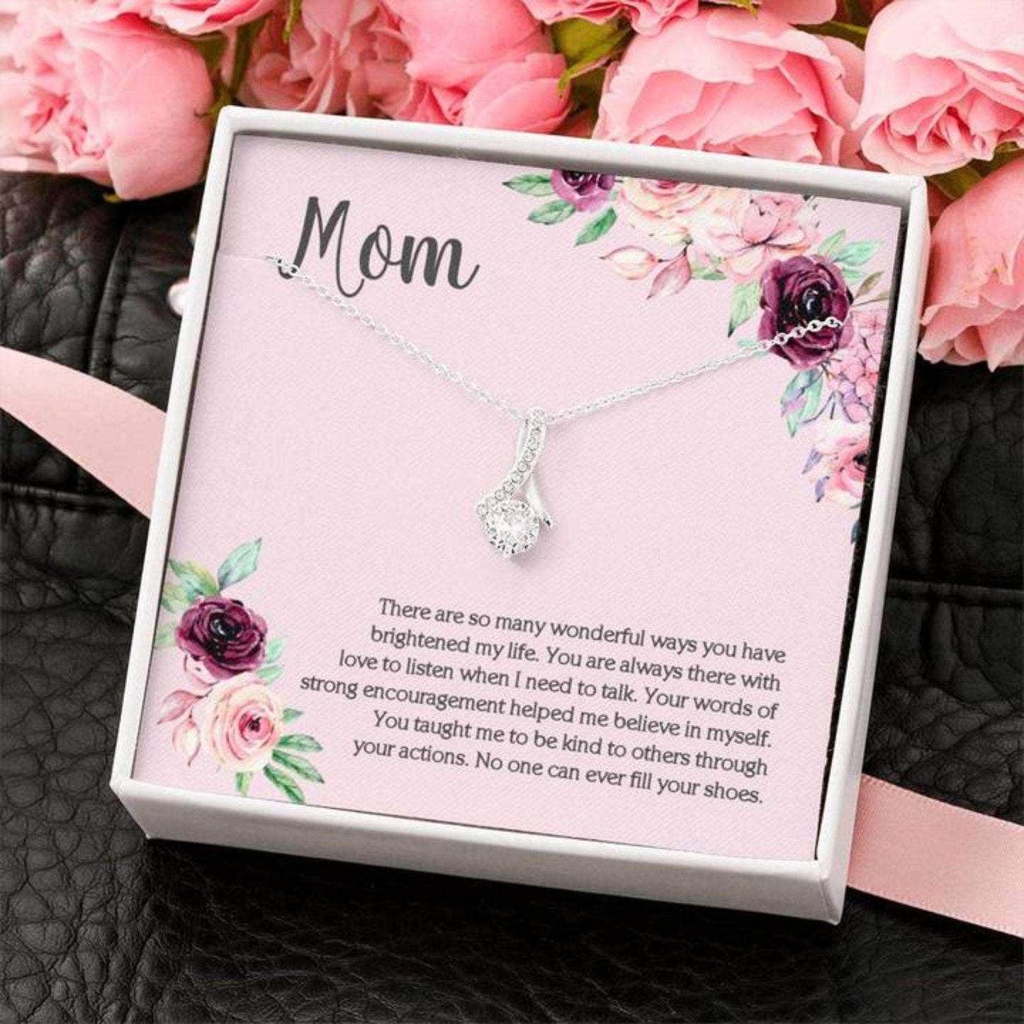 Mom Necklace, Cubic Zirconia Pendant Necklace For Mom On Floral