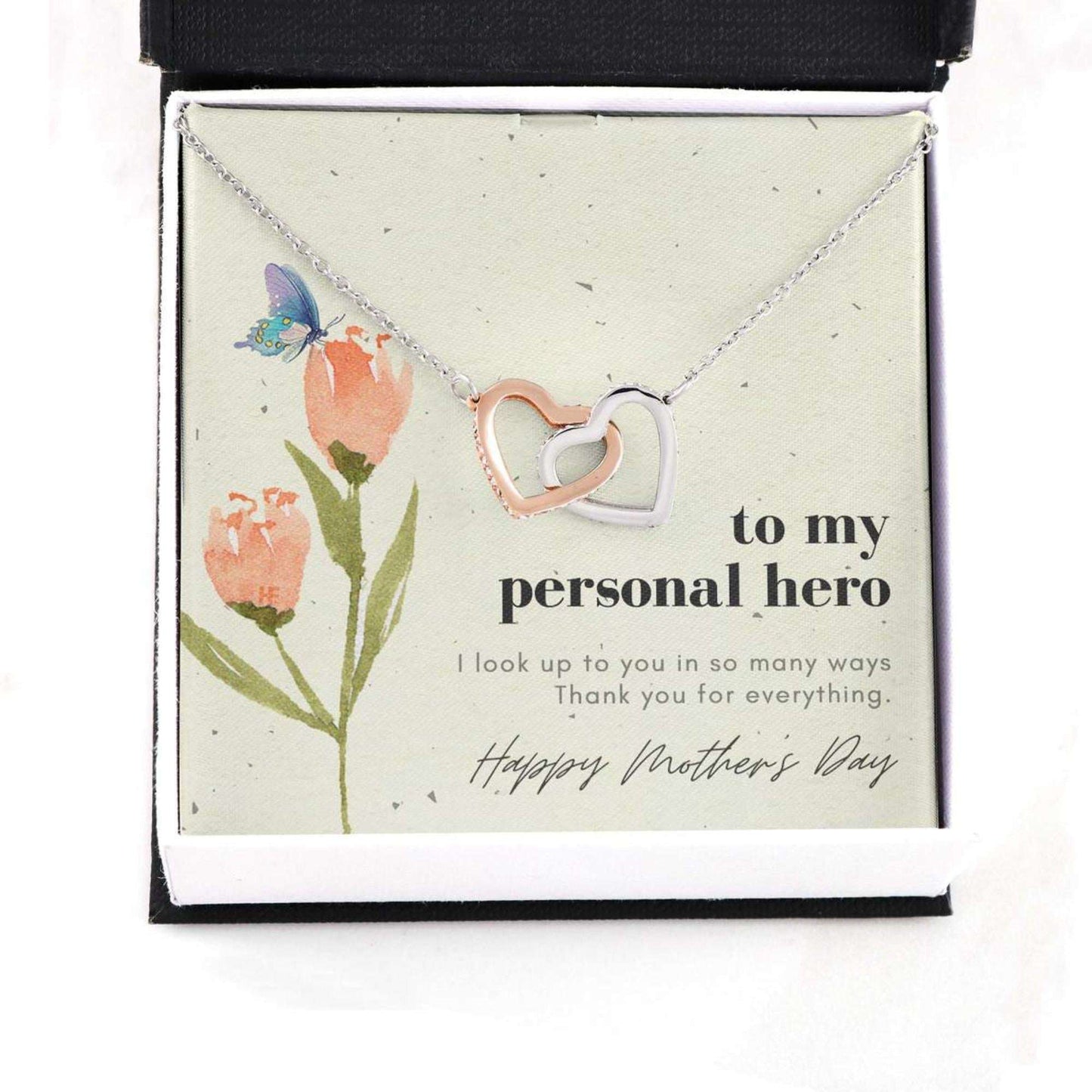 Mom Necklace, Elegant Gift For Mom Your Personal Hero On Mother’S Day With Flower And Butterfly Interlocking Hearts Necklaces