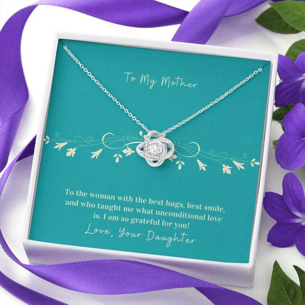 Mom Necklace, Gift To Mother From Daughter – Hug – Gift Necklace Message Card