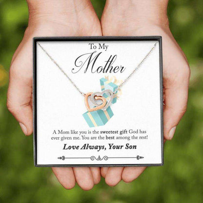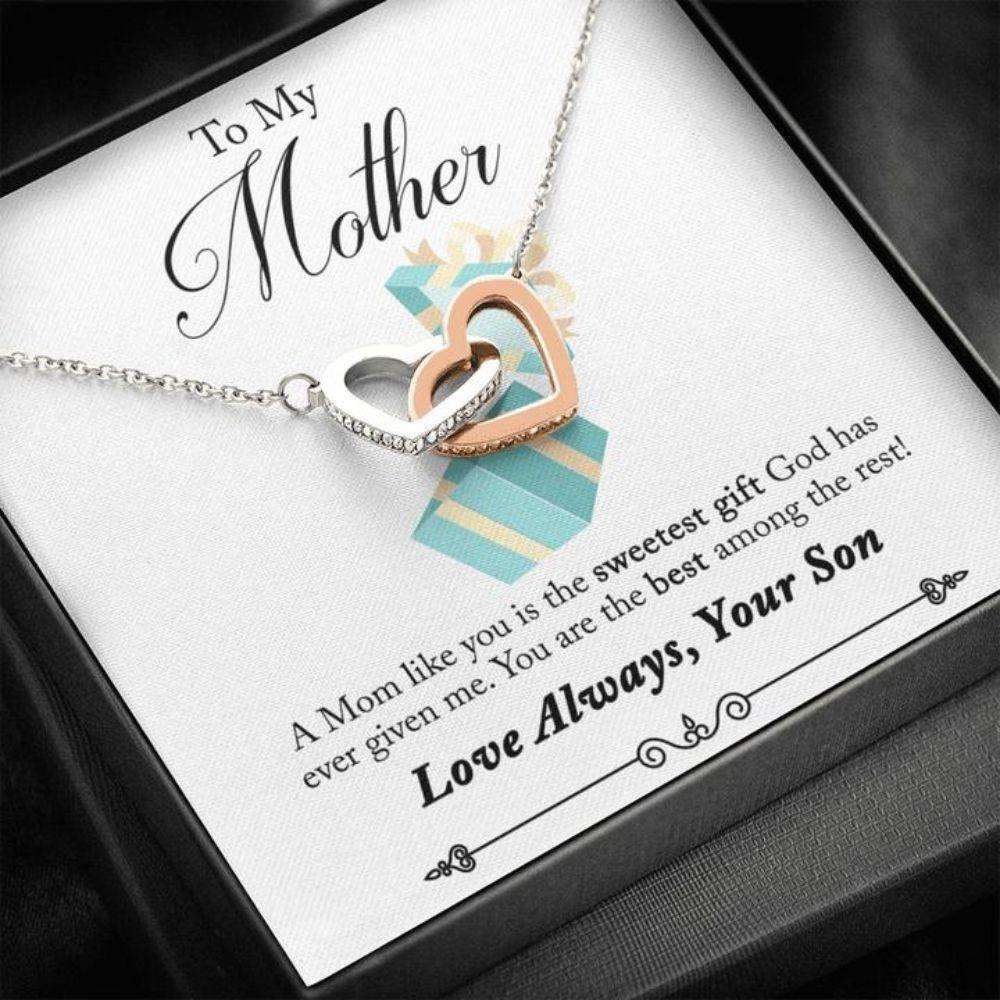 Mom Necklace, To Mom From Son €“ Sweetest Gift €“ Gift Necklace Message Card