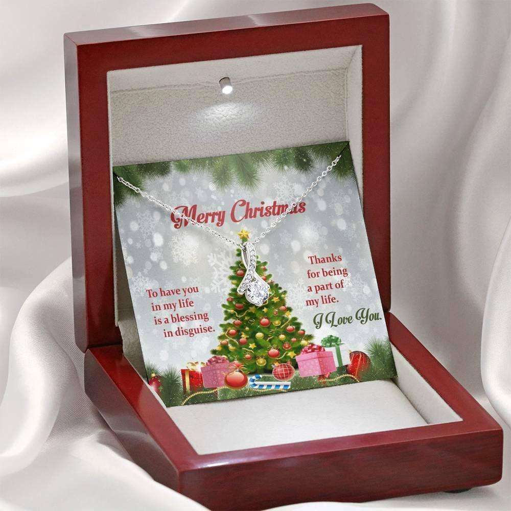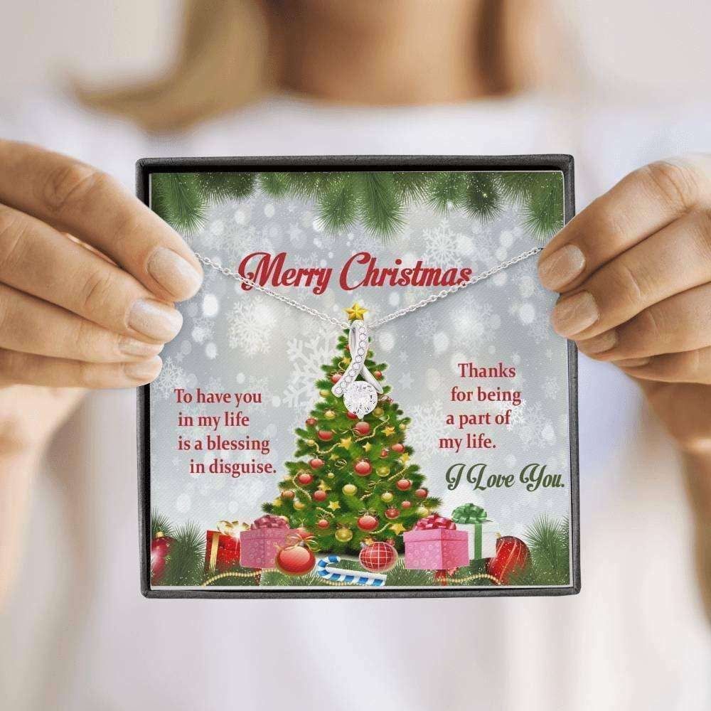 Surprise your future wife, fiancée, or girlfriend this Christmas with a beautiful Cubic Zirconia necklace gift. This elegant necklace is designed to express your deep love and commitment during the festive season and beyond. The ribbon-inspired pendant is embellished with dainty cubic zirconia leading down to a dazzling 7mm round cut Cubic Zirconia stone, capturing light beautifully for a radiant sparkle.