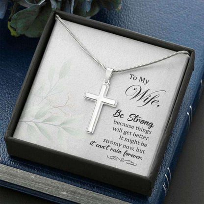 Wife Necklace, Gift To Wife €“ Wife Necklace Be Strong €“ Faithful Cross Necklace €“ Gift Necklace Message Card