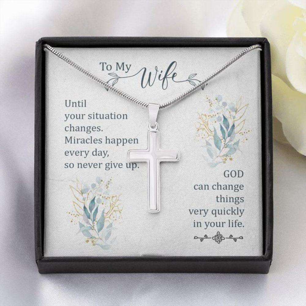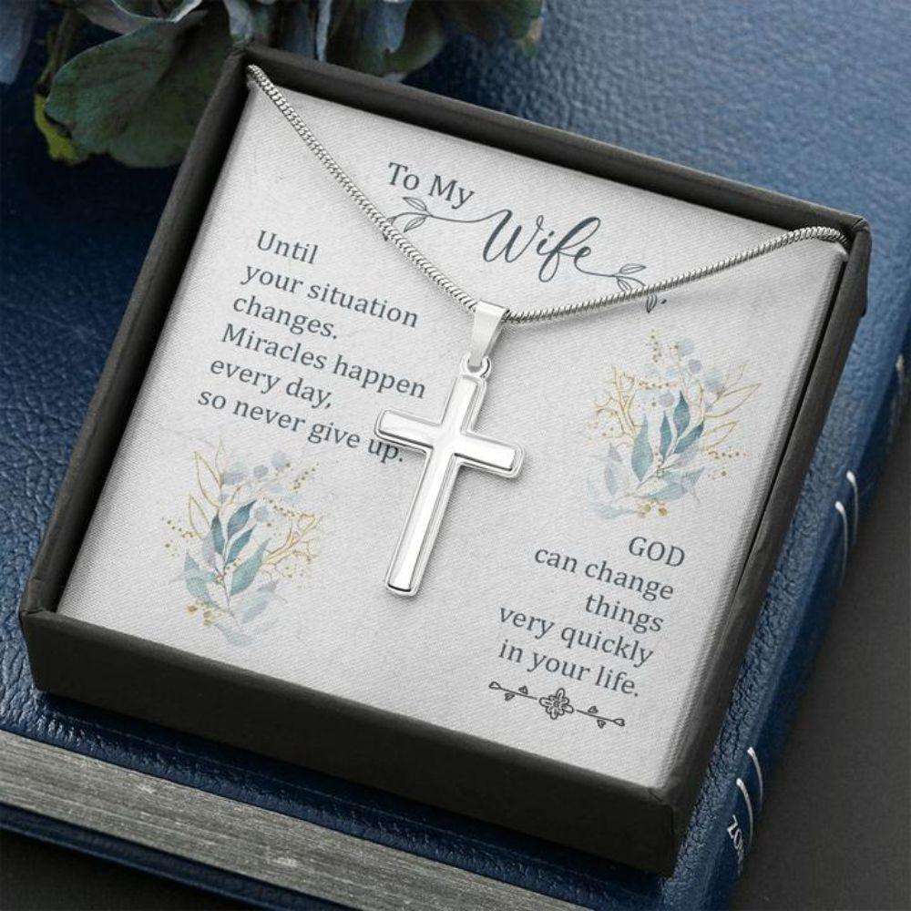 Wife Necklace, Gift To Wife €“ Wife Necklace Change €“ Faithful Cross Necklace €“ Gift Necklace Message Card
