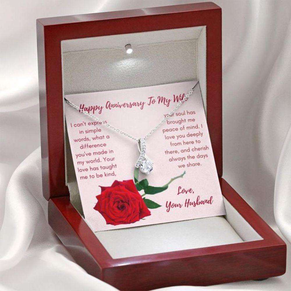 Wife Necklace, Happy Anniversary Necklace Gift €“ Gift Necklace Message Card To My Wife Anniversary Red Rose