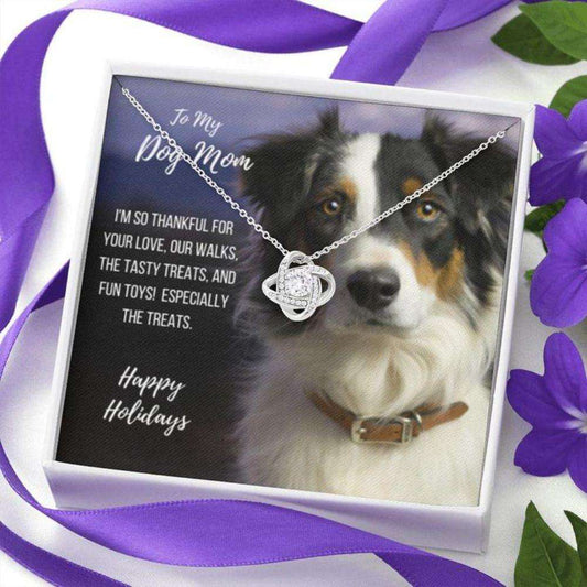 Dog Mom Necklace, Gift Necklace Message Card Happy Holidays “ Australian Shepherd Dog Mom Stronger Together