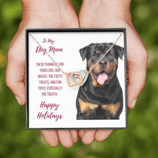 Dog Mom Necklace, Gift Necklace Message Card Happy Holidays “ Rottweiler Dog Mom