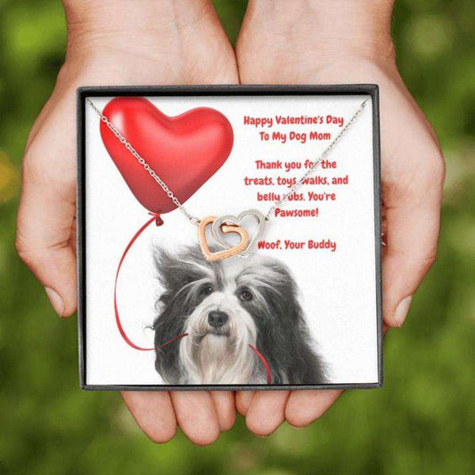 Dog Mom Necklace, Gift Necklace Message Card “ To My Black And White Havanese “ Dog Mom Happy Valentine’S Day